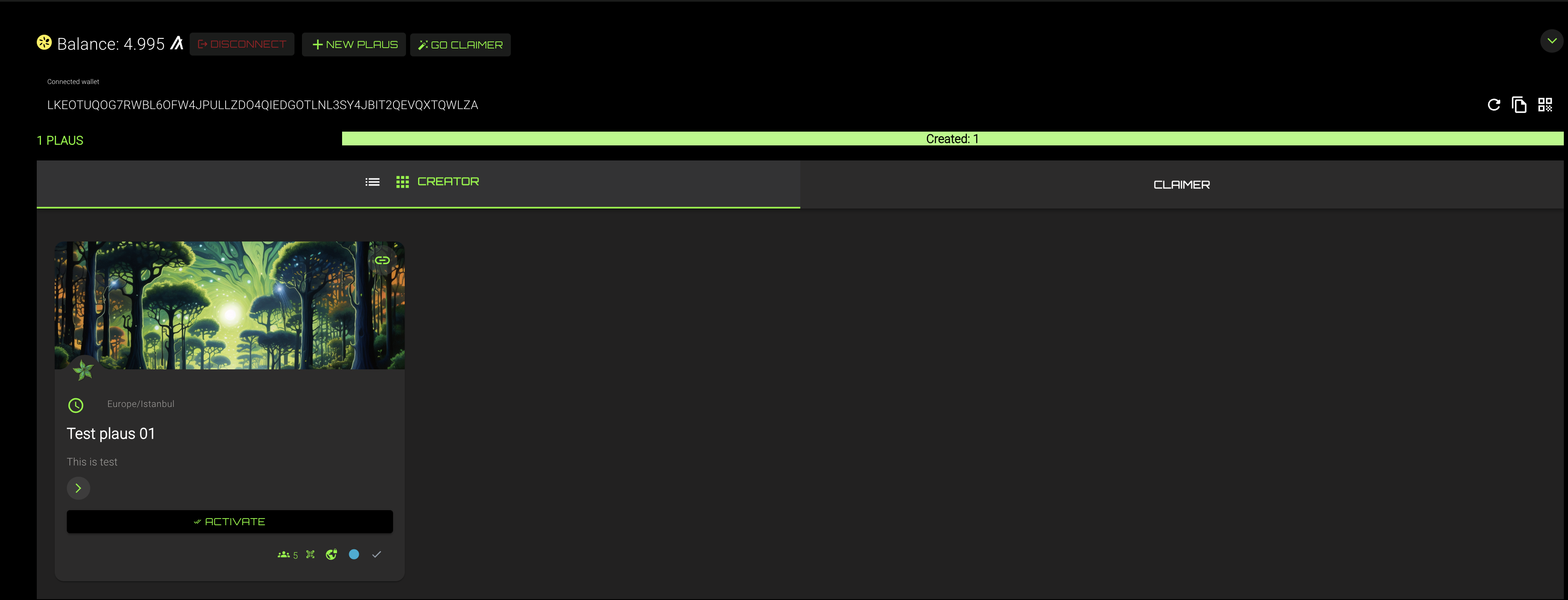 * ***Starts:*** Timestamp in which the PLAUS will be available for claiming (Optional)