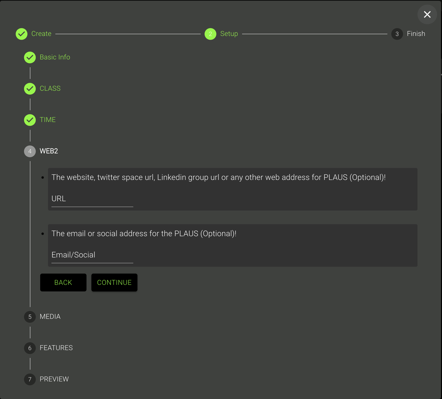 * ***URL:*** The website, twitter space url, Linkedin group url or any other web address that may optionally be attached to the PLAUS (Optional)