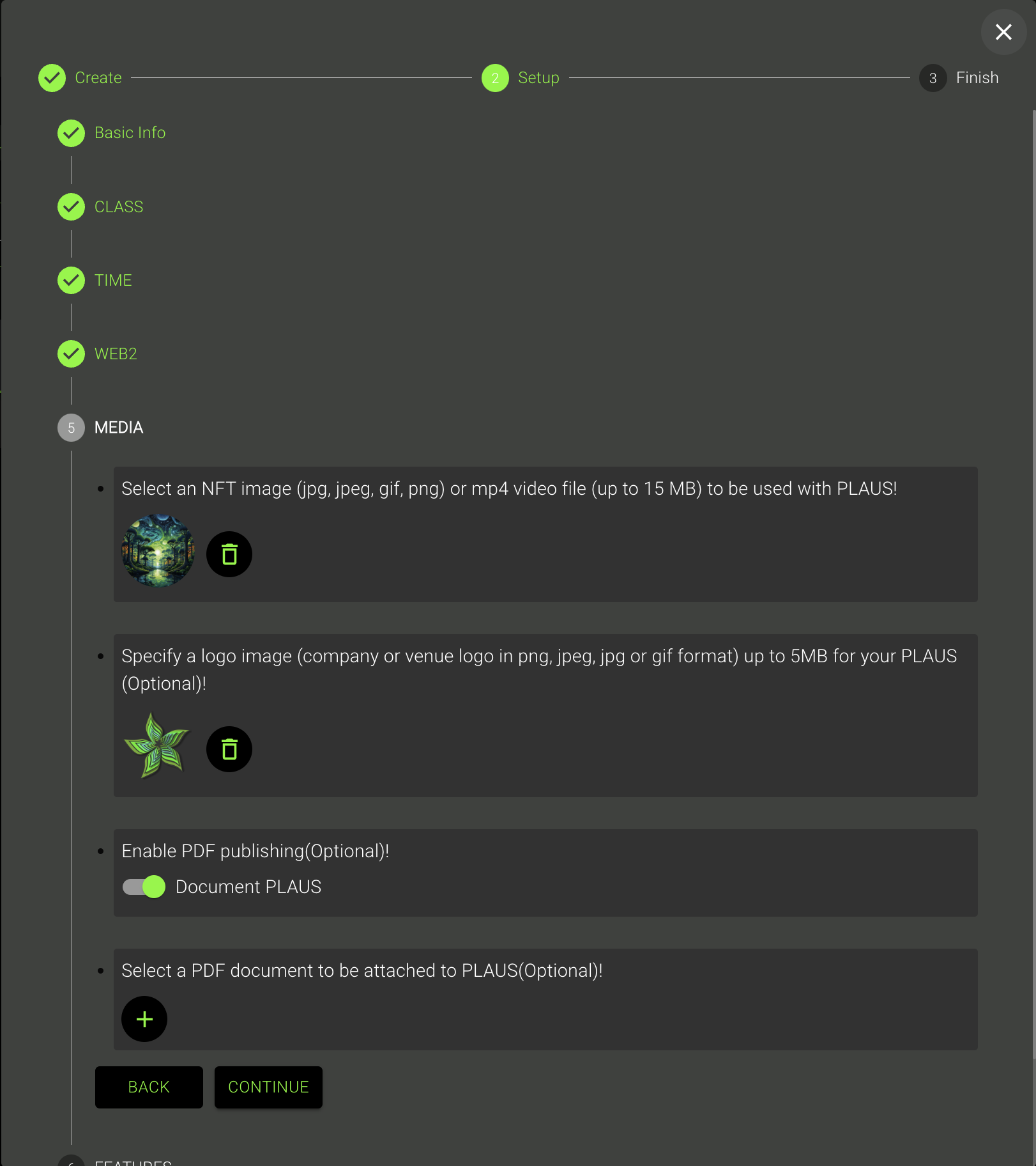 * ***NFT:*** Select an NFT image file to be used with PLAUS(Optional)!
