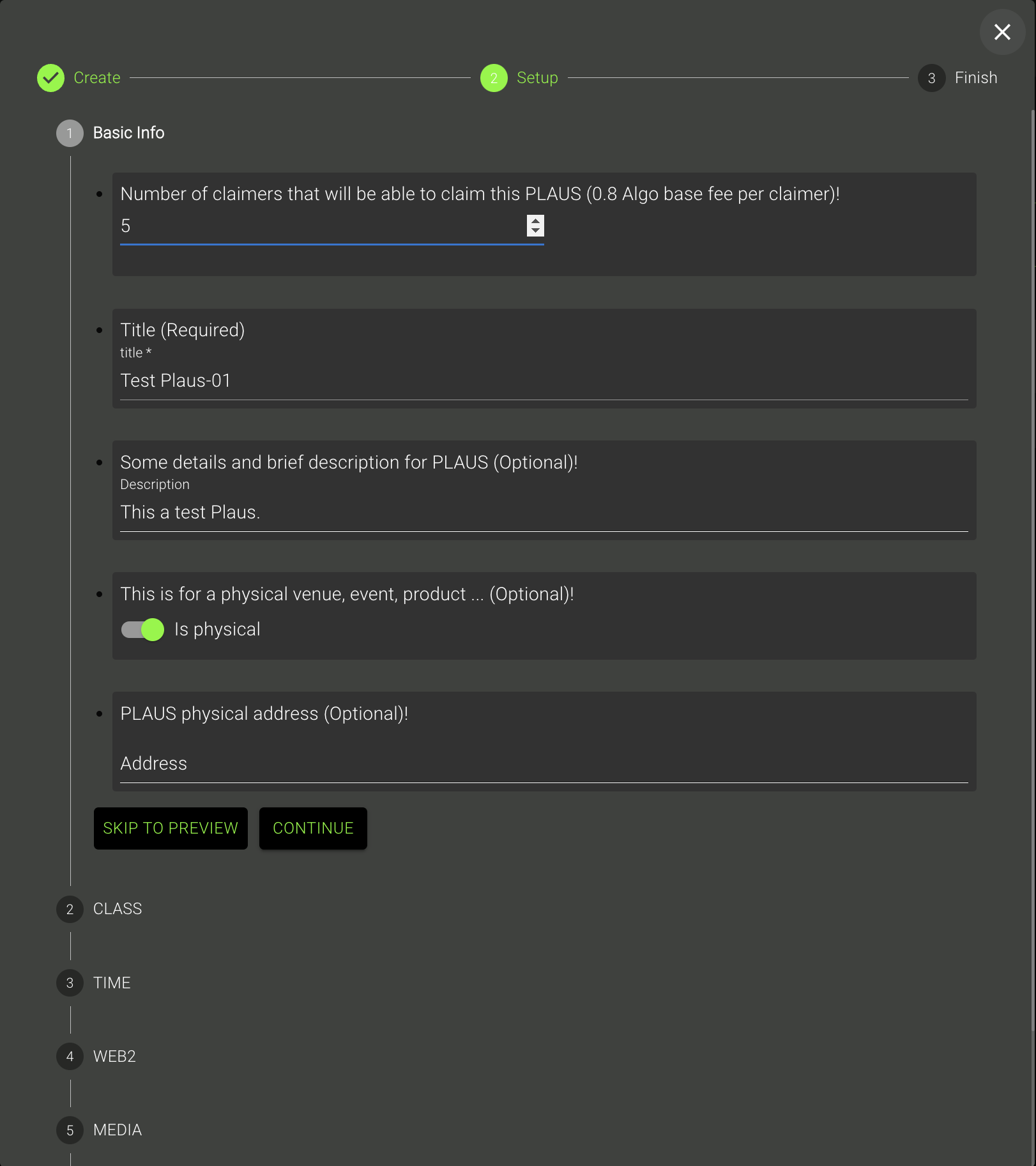 * ***Number of claims:*** Number of audience users that will be able to claim the PLAUS (Optional)